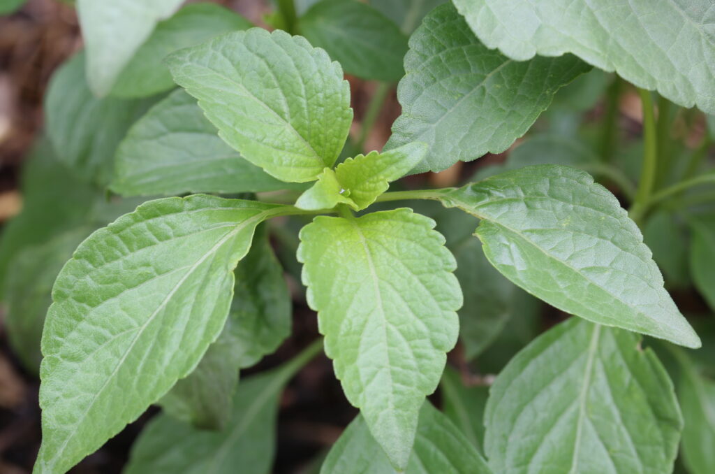 Un écotype (une sélection de l’Université Purdue) se distinguait par 88% de géranial [66] avec quatre flavonoïdes: la cirsimaritine, l’isothymusine, le xanthomicrol et la lutéoline.