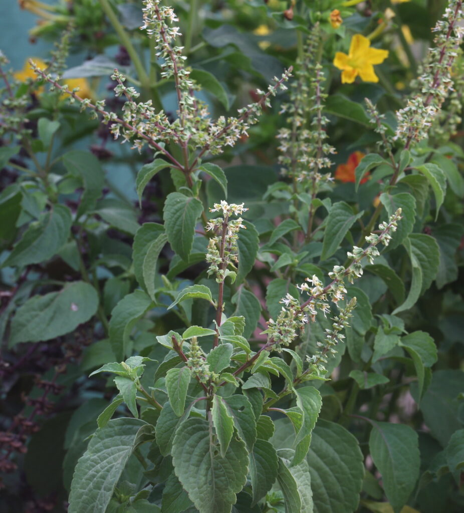 Ainsi que je l’ai décliné dans mes diverses monographies récentes, il en est de même pour Ocimum tenuiflorum, Ocimum americanum, Ocimum kilimandscharicum, Ocimum basilicum… En effet, des extraits de ces espèces d’Ocimum, sont utilisés pour faire de la “synthèse verte” de nano-particules diverses et variées.