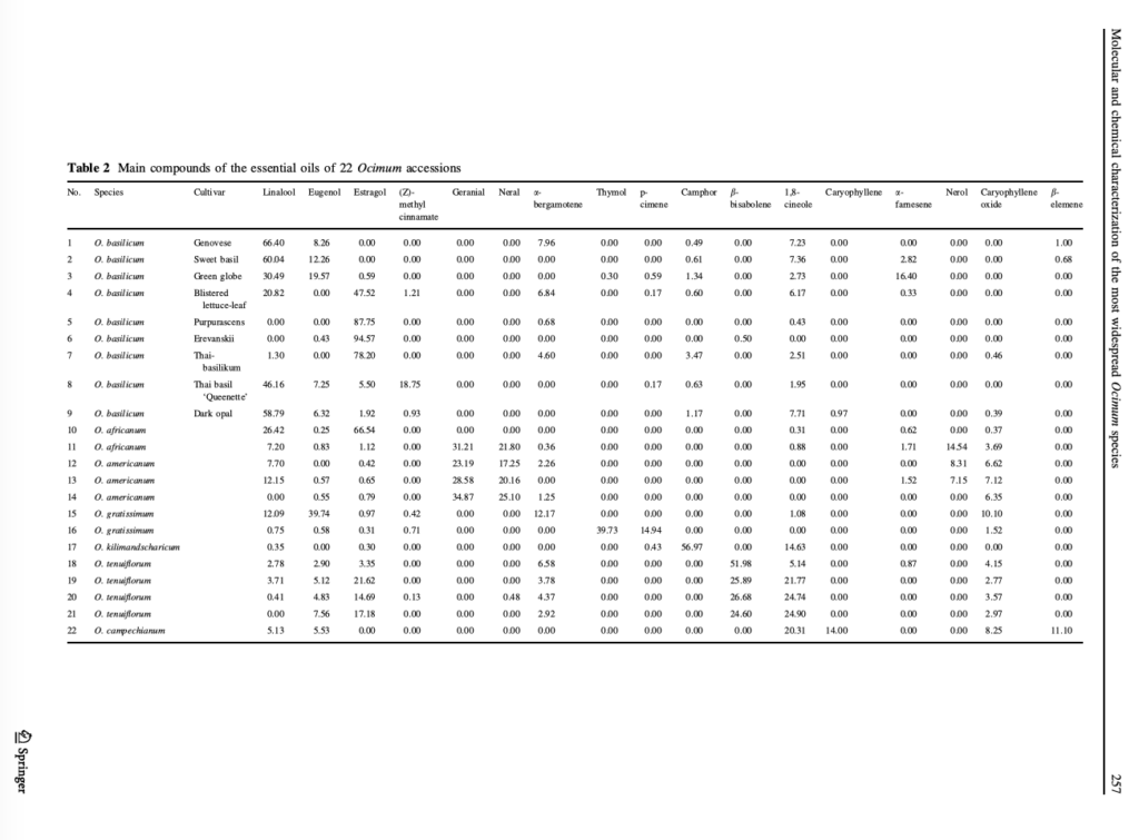 “Sources of variability in essential oil composition of Ocimum americanum and Ocimum tenuiflorum”. 2015. Link.