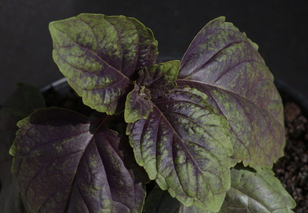 Par exemple, la plante Kapura X. SP. 03/2025 est issue d’une plante-mère d’Ocimum kilimandscharicum – apparue spontanément durant l’été 2024 – authentique, du moins d’un point de vue phénotypique.