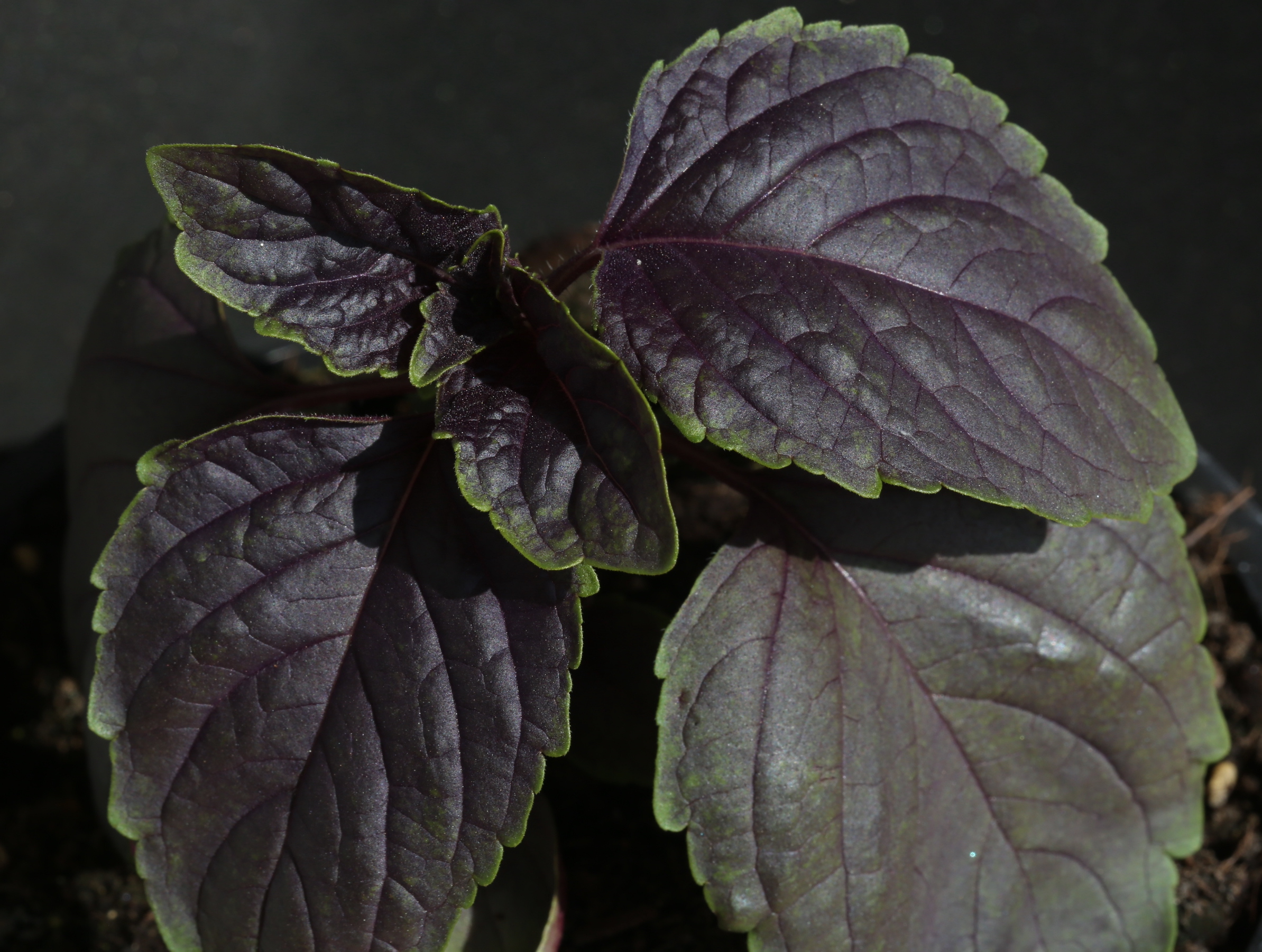 Ses longues feuilles, très peu dentelées, pourrait suggérer qu’il s’agit d’un croisement avec Ocimum americanum americanum.