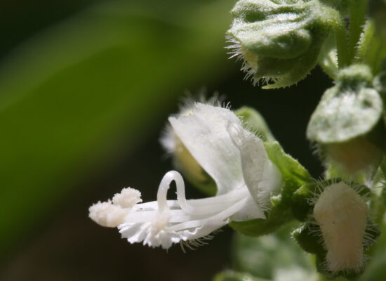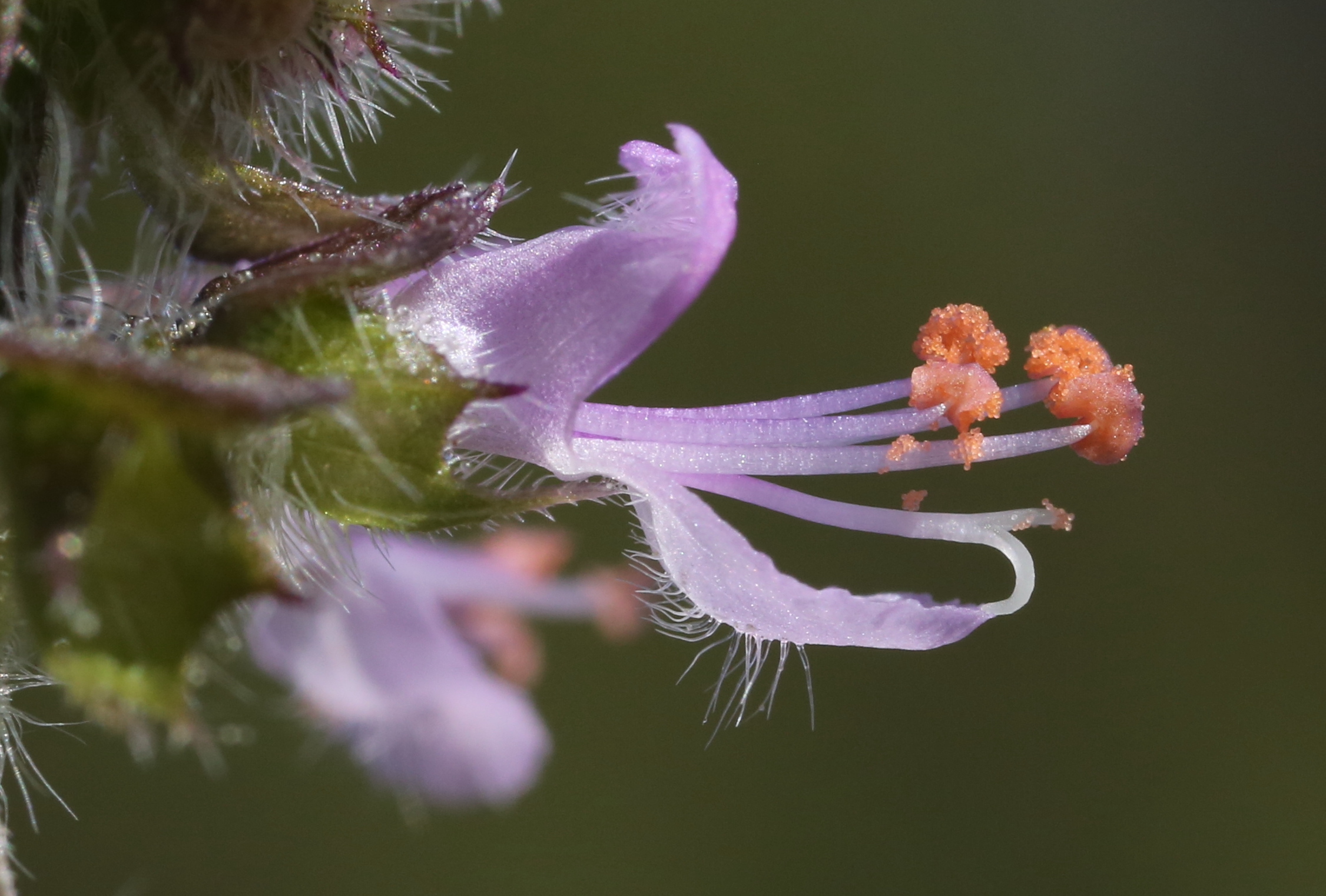 It is sometimes difficult to distinguish between Ocimum basilicum and Ocimum americanum. Using a macro lens, it is possible to see that their calyxes and bracts are quite different.