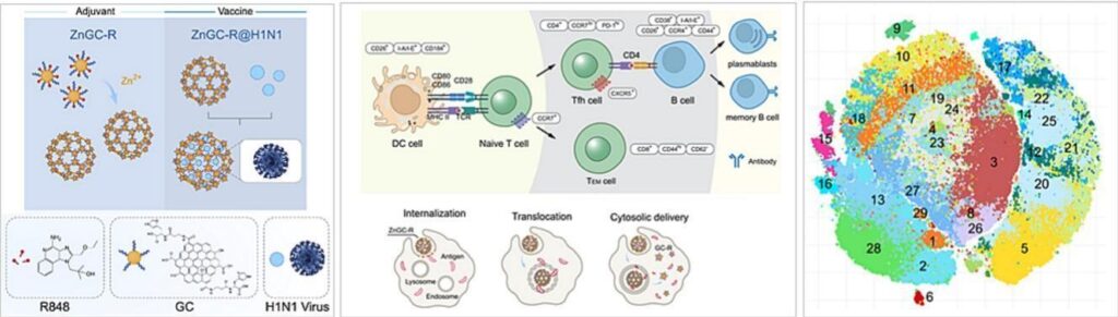 “Functionalized graphene oxide serves as a novel vaccine nano-adjuvant for robust stimulation of cellular immunity”. L’oxyde de graphène fonctionnalisé sert de nouveau nano-adjuvant vaccinal pour une stimulation robuste de l’immunité cellulaire. [40]